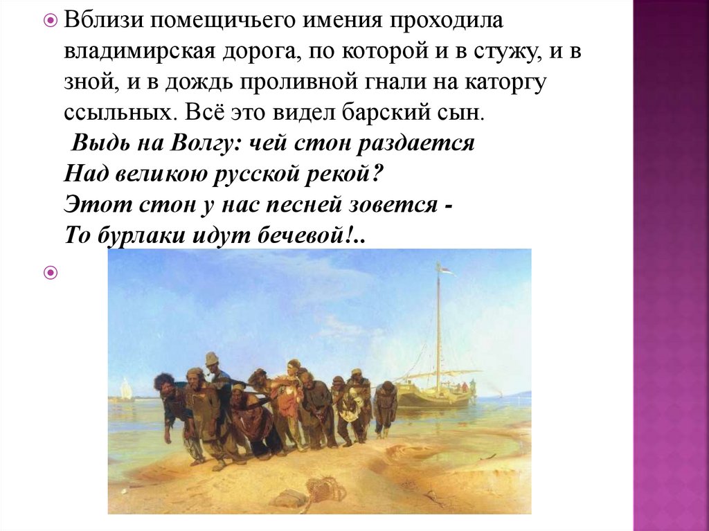Этот стон у нас песней зовется То бурлаки идут бечевой!..