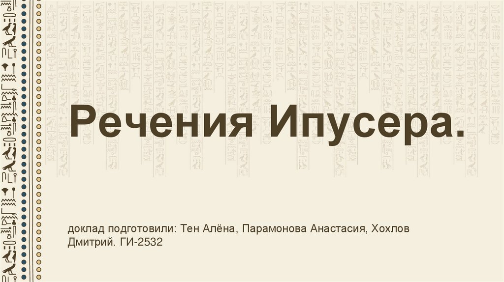 Речения Ипусера.доклад подготовили: Тен Алёна, Парамонова Анастасия, Хохлов