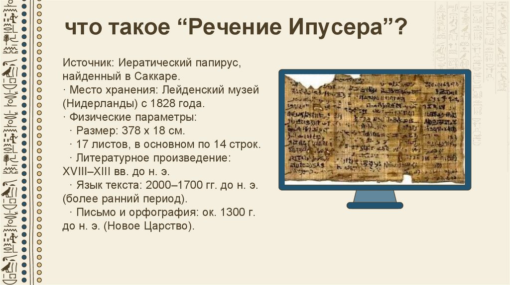 что такое “Речение Ипусера”?Источник: Иератический папирус,