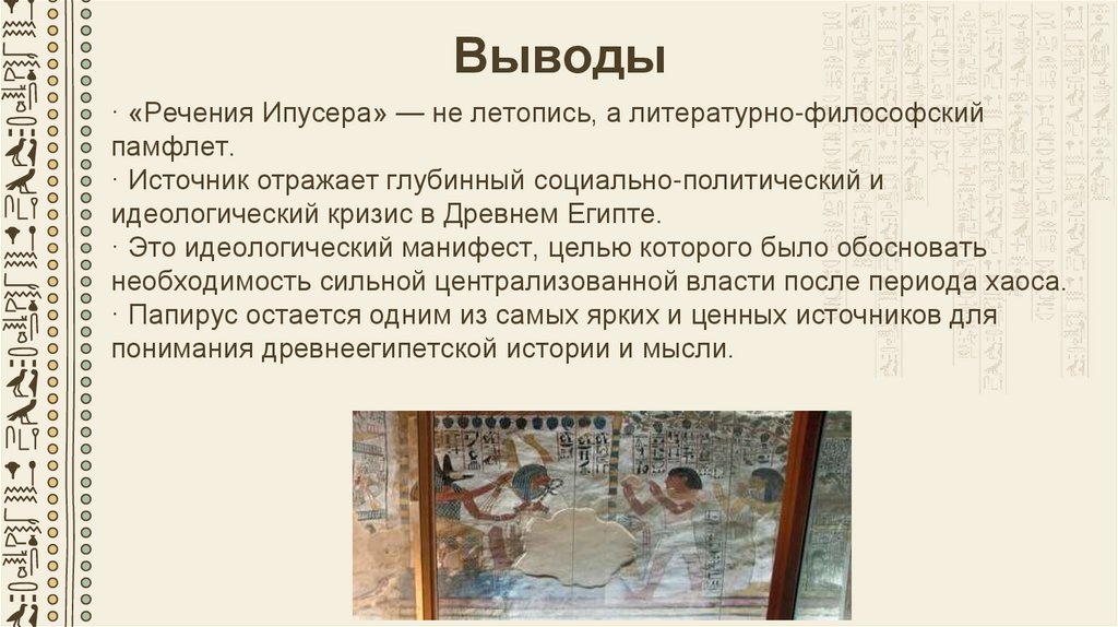Выводы· «Речения Ипусера» — не летопись, а литературно-философский