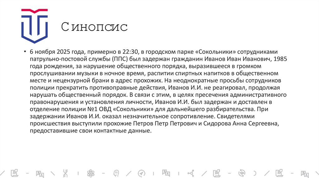 правонарушения и установления личности, Иванов И.И. был задержан и доставлен в