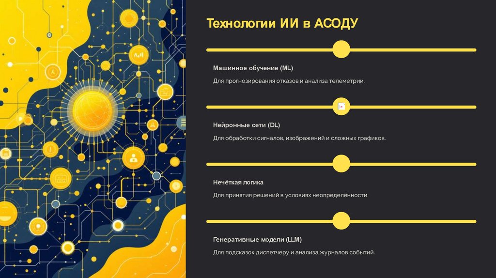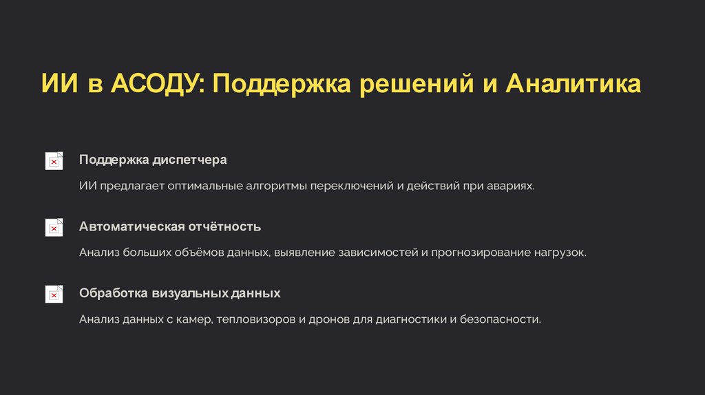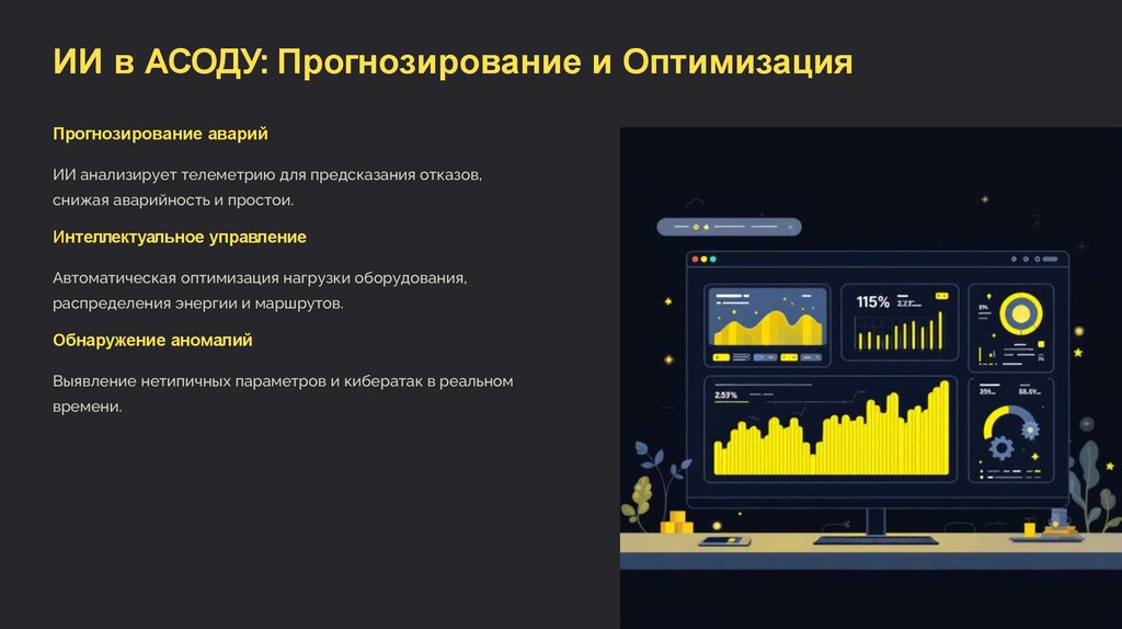 ИИ предлагает оптимальные алгоритмы переключений и действий при авариях.