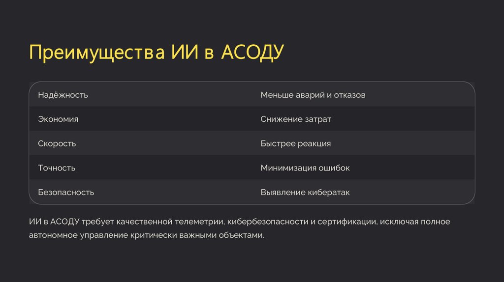 ИИ в АСОДУ требует качественной телеметрии, кибербезопасности и сертификации, исключая полное