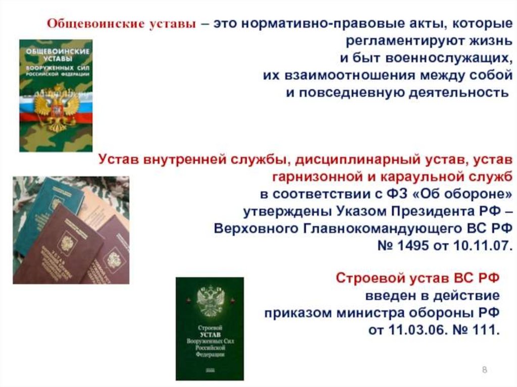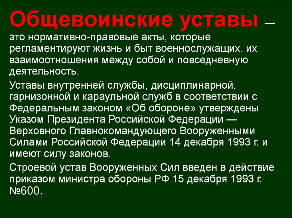 Общевоинские уставы —это нормативно-правовые акты, которые