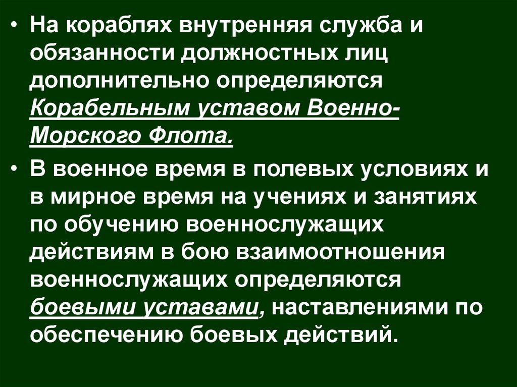 • На кораблях внутренняя служба иобязанности должностных лиц