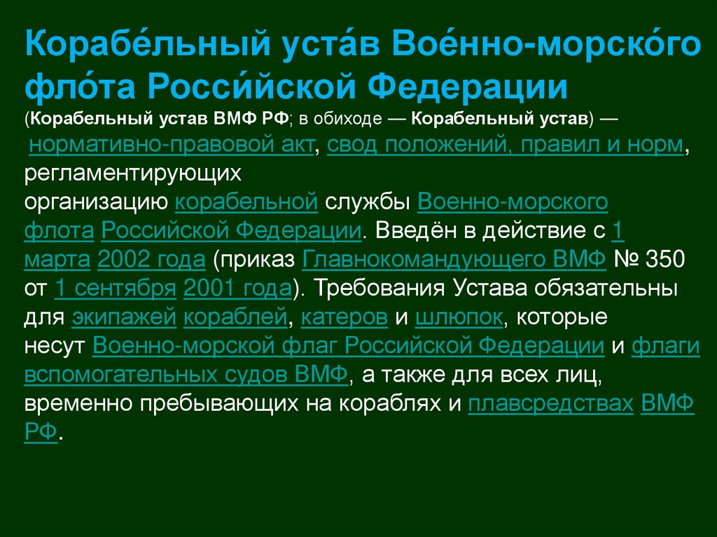 Корабельный устав Военно-морского флота Российской Федерации. Он