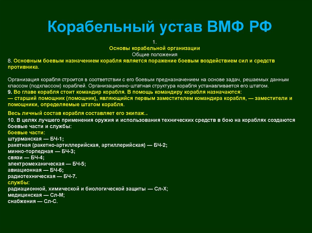 правовой работы, борьбы за живучесть корабля. В нём регламентируются