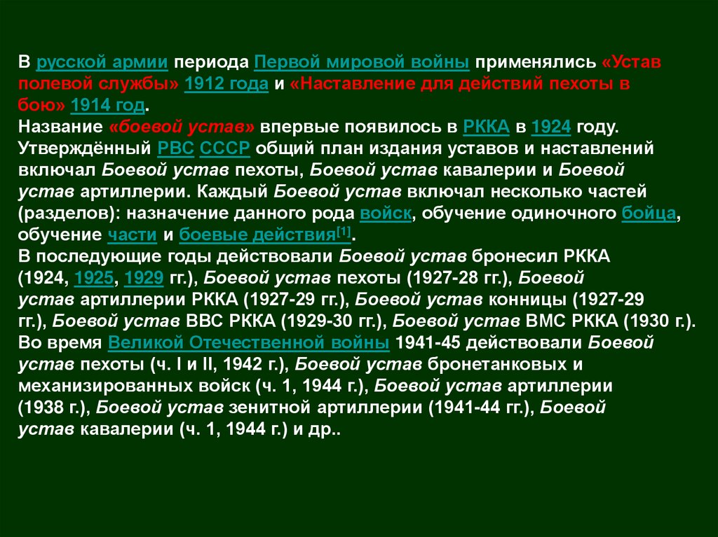 Боевые уставы — официальные руководящие документы,устанавливающие основные принципы боевой