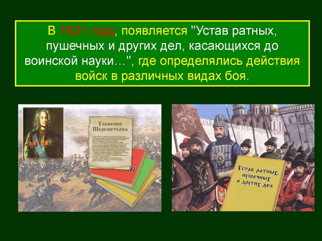 В 1621 году, появляется "Устав ратных,пушечных и других дел, касающихся до