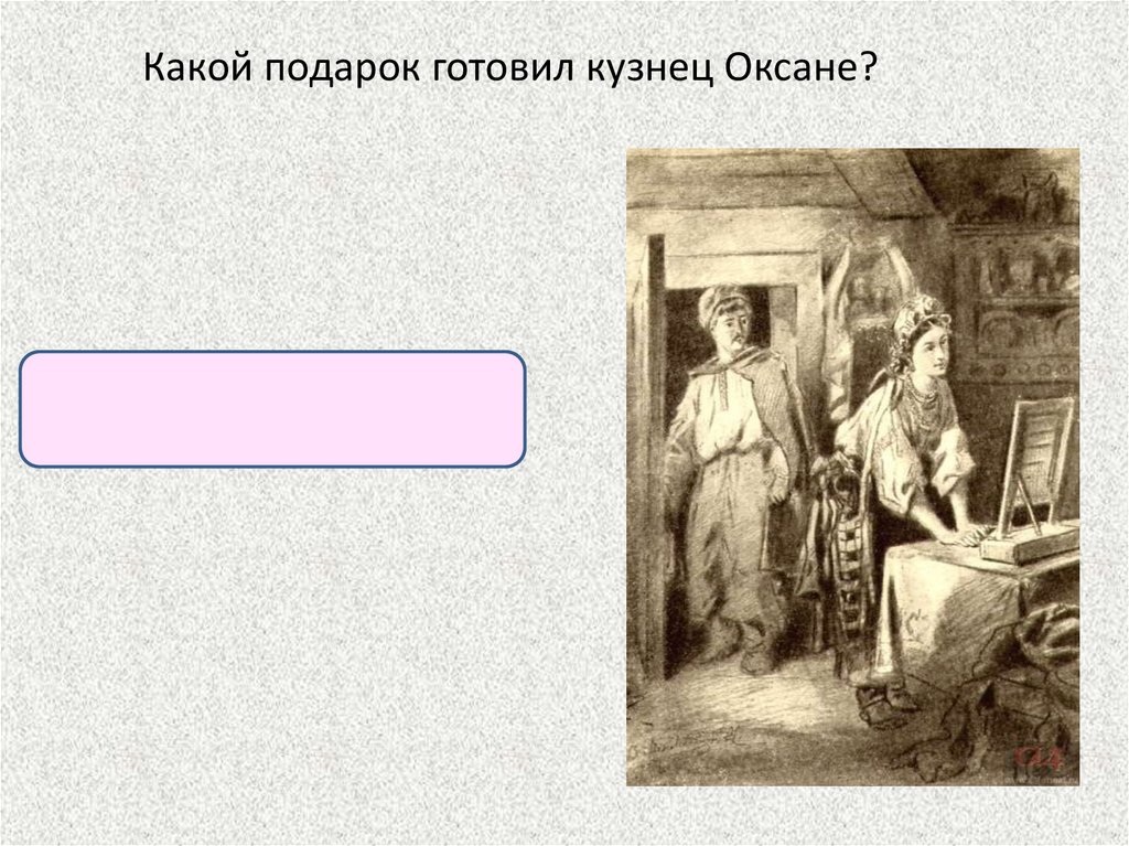 Какой подарок готовил кузнец Оксане?Сундук с железной оковкой и росписью.