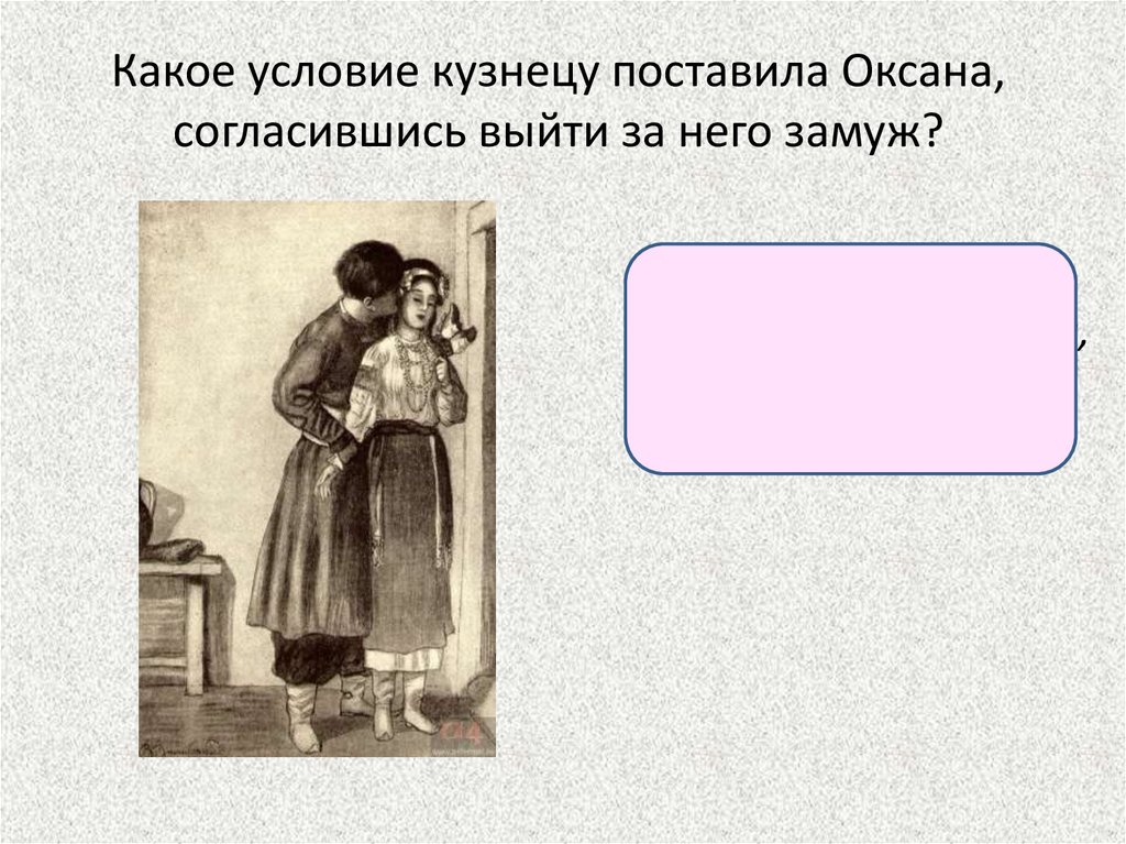 Какое условие кузнецу поставила Оксана,согласившись выйти за него замуж?