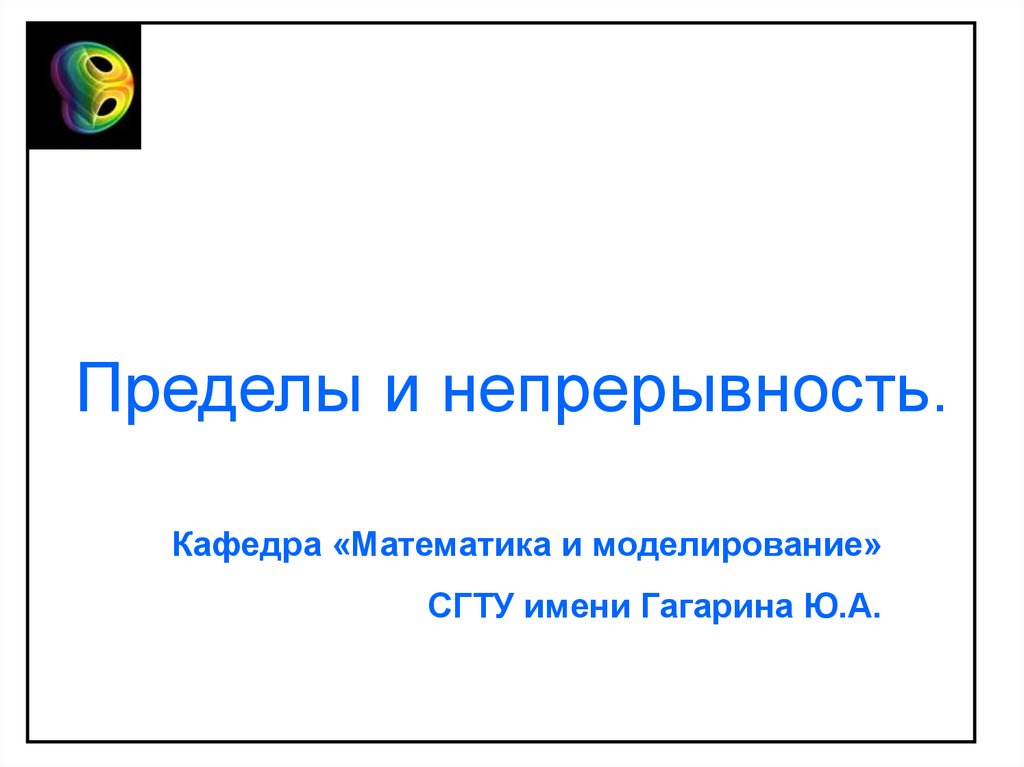 Пределы и непрерывность.Кафедра «Математика и моделирование»