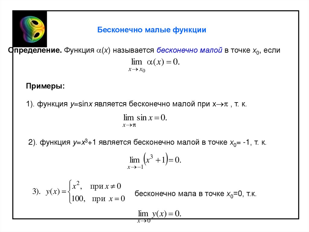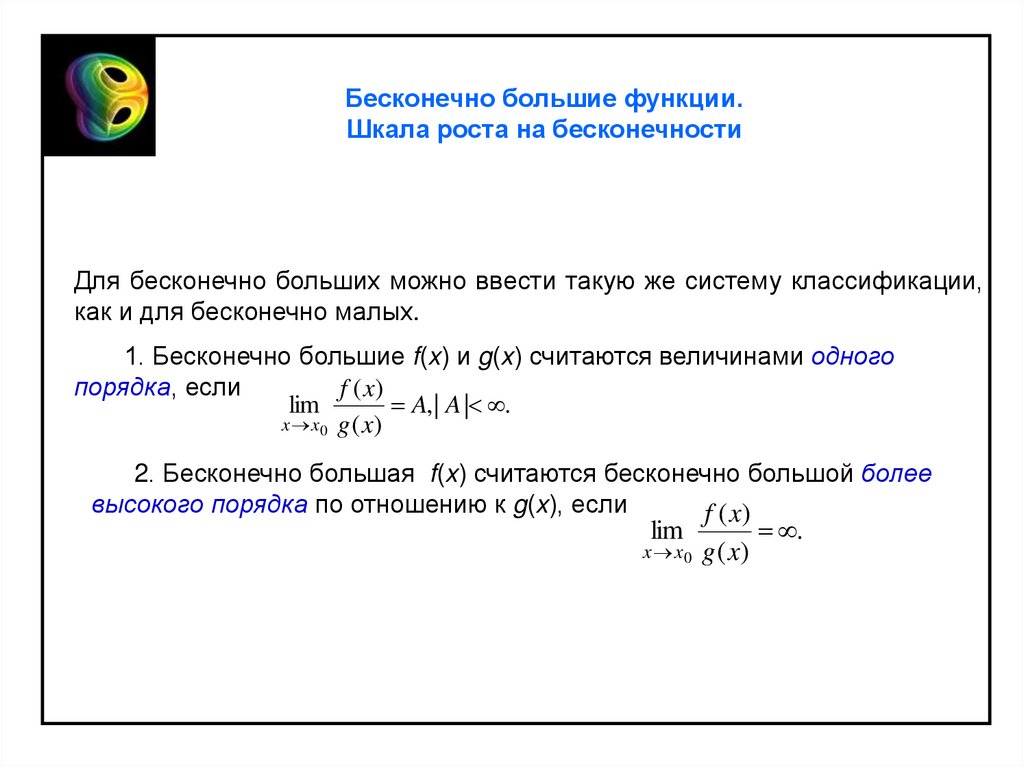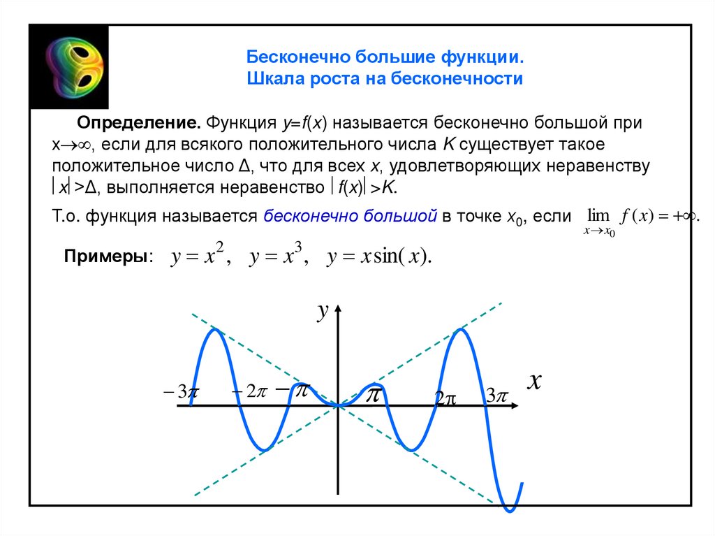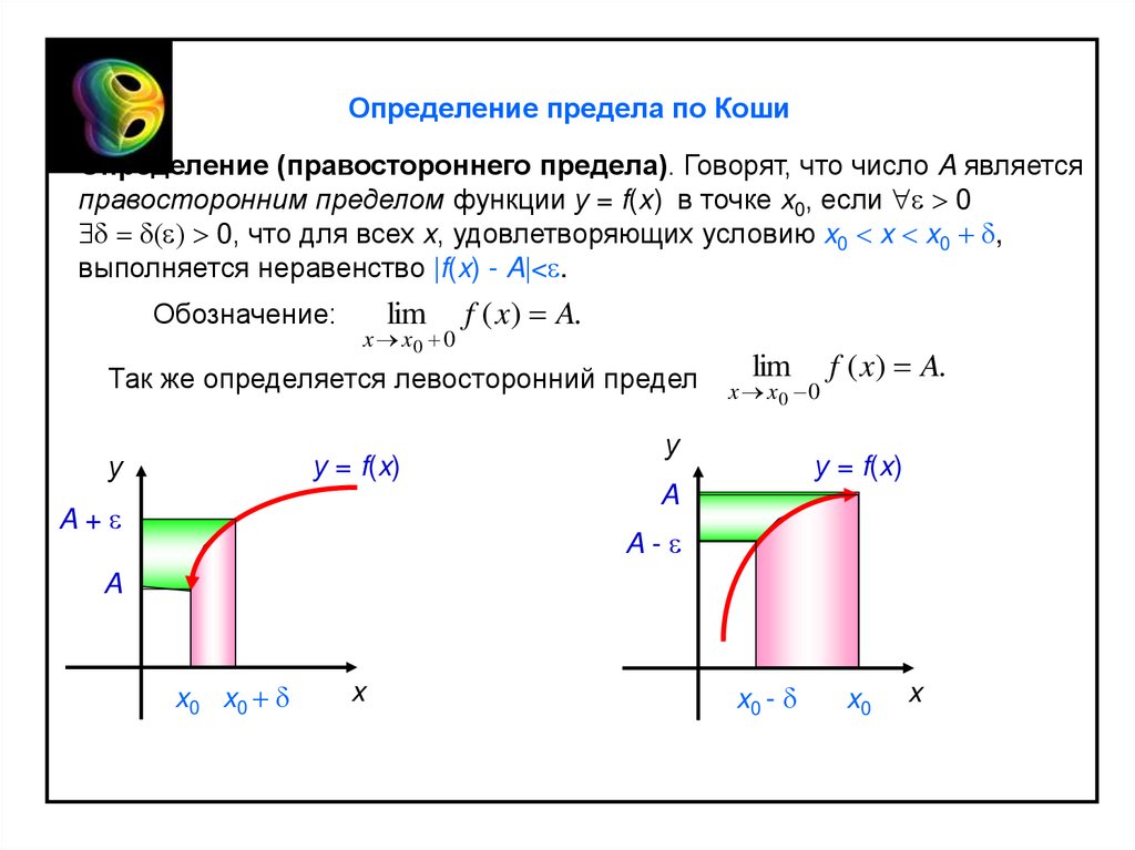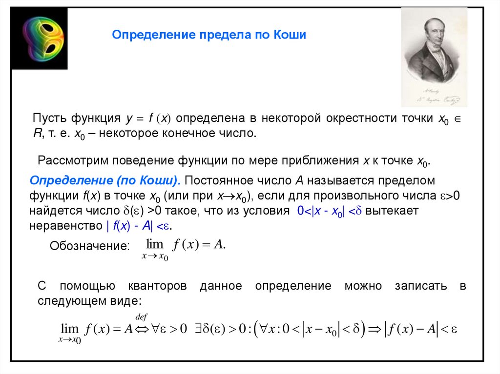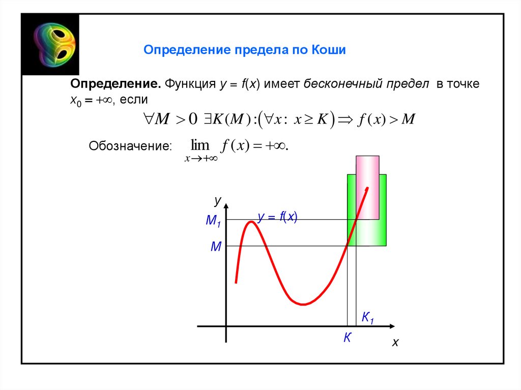 Определение предела по КошиОпределение. Функция у = f(x) имеет бесконечный предел в точке