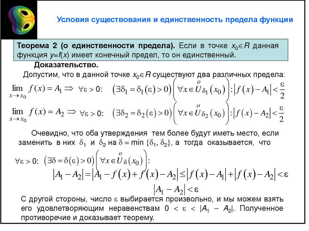 найдется число ( ) >0 такое, что из условия 0< x - x0 < вытекает