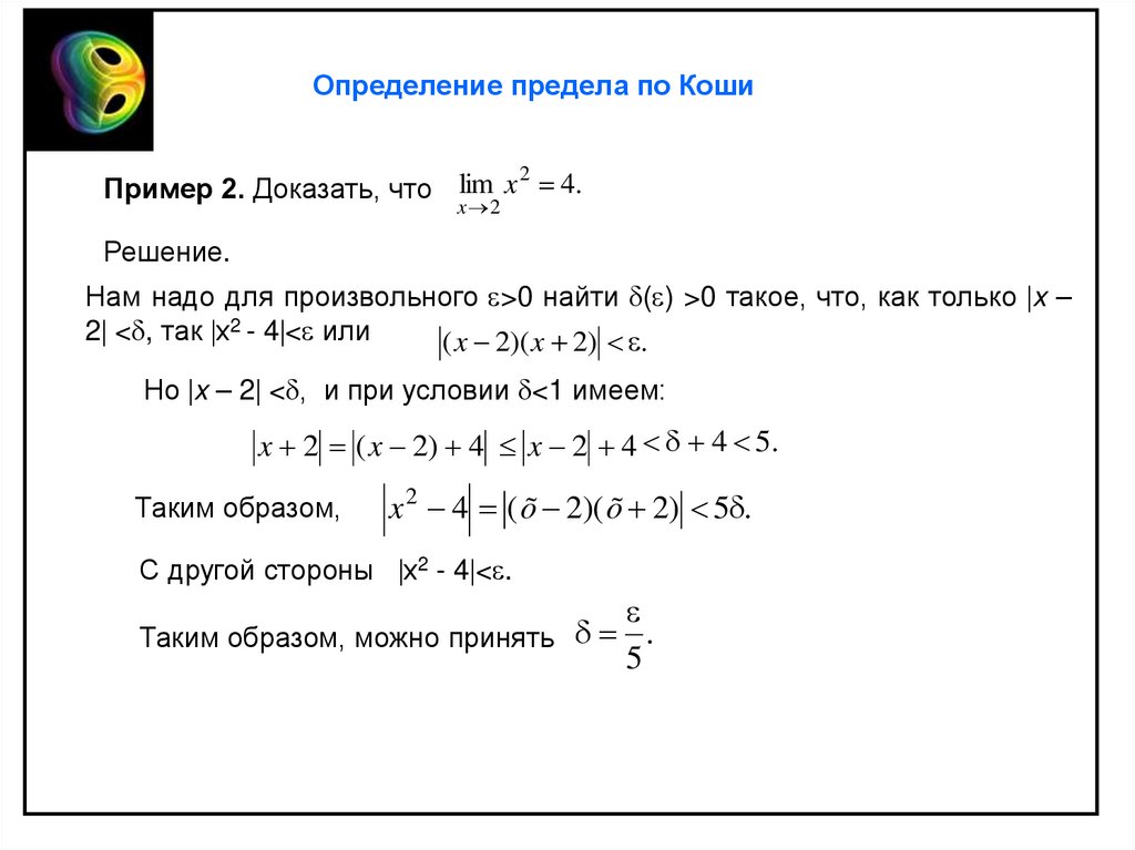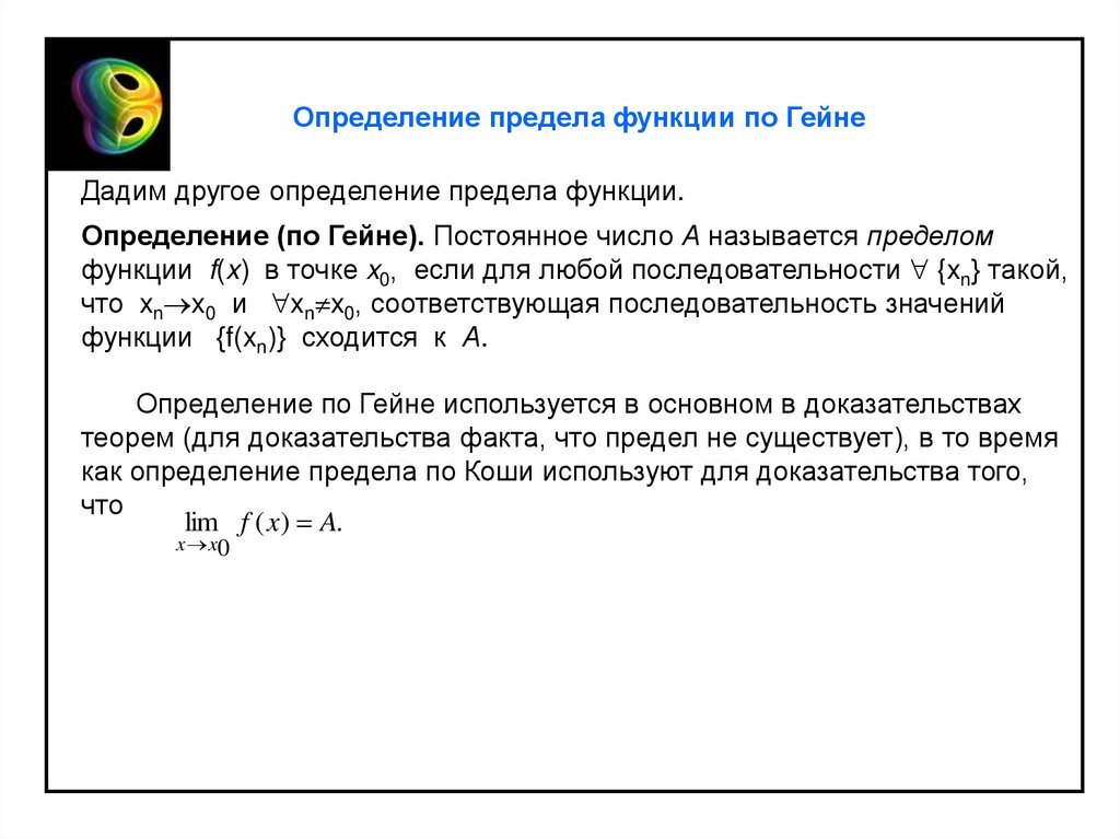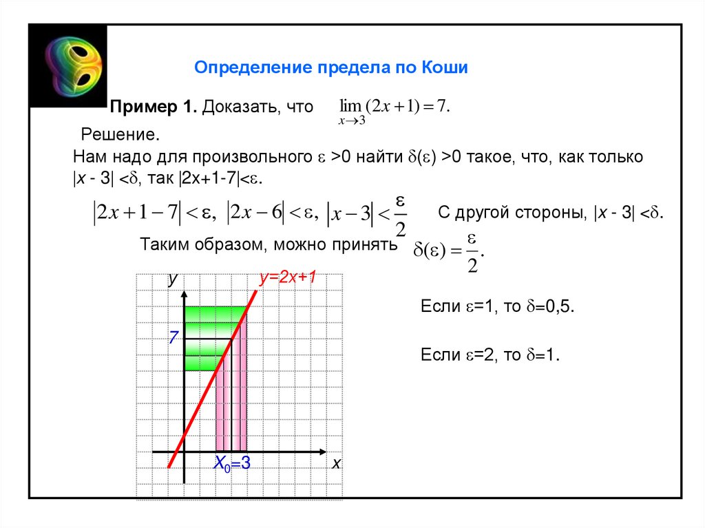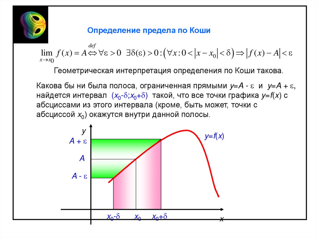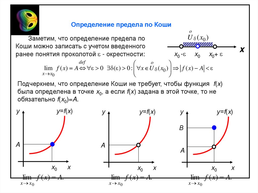 Определение предела по КошиПусть функция y f x определена в некоторой окрестности точки x0