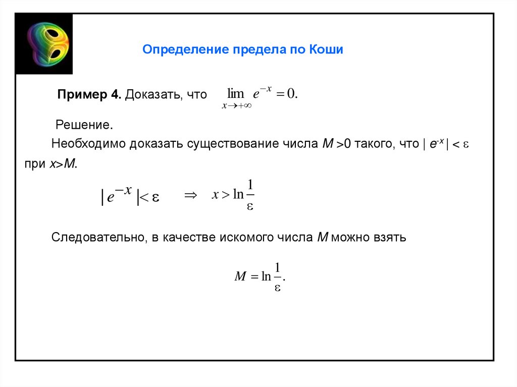 Необходимо доказать существование числа M >0 такого, что e-x <