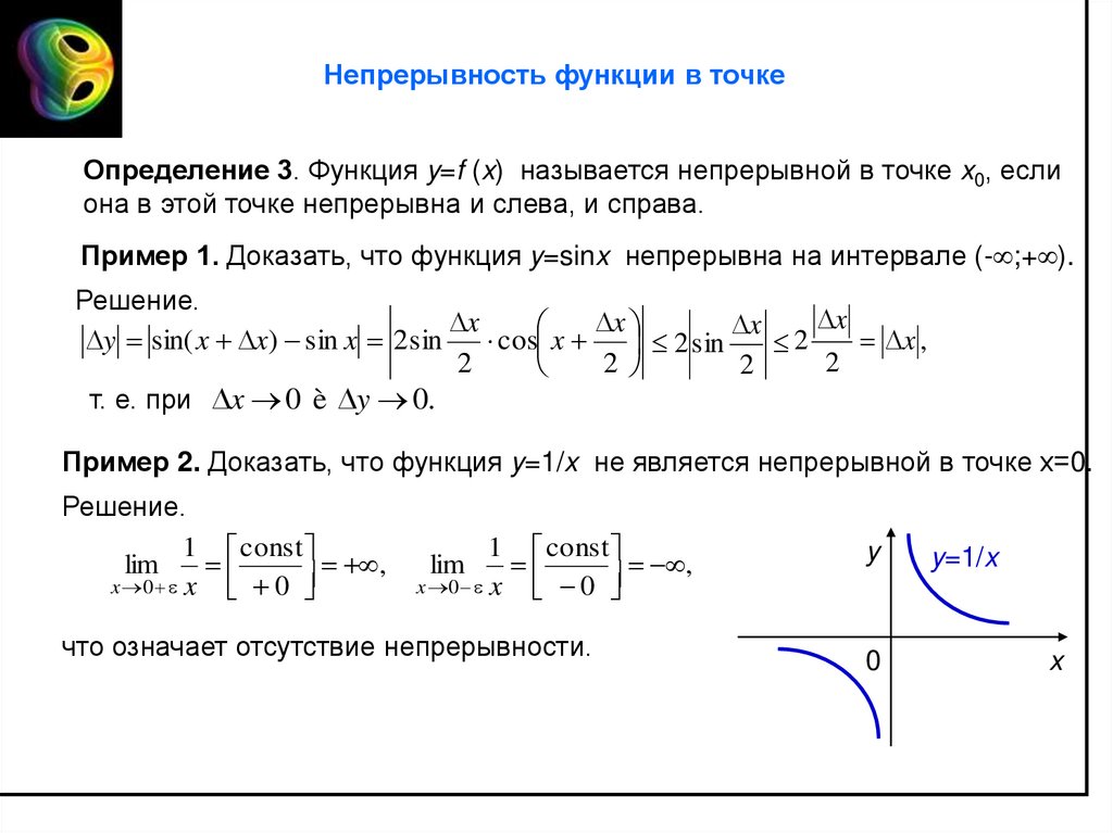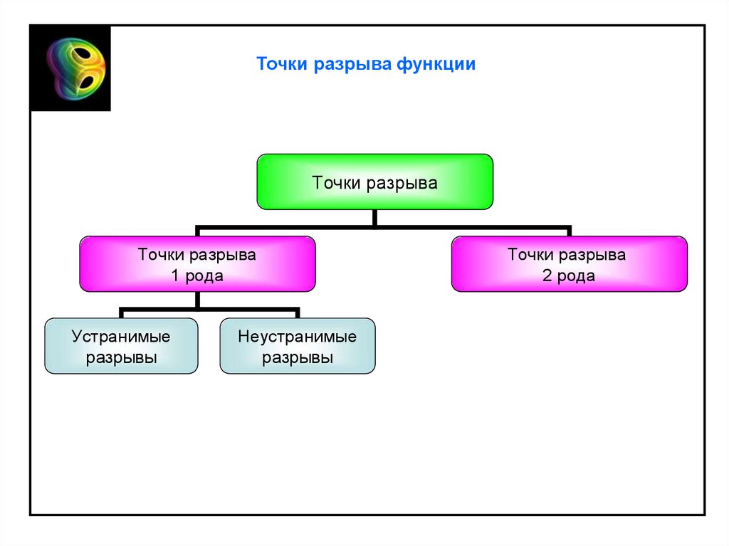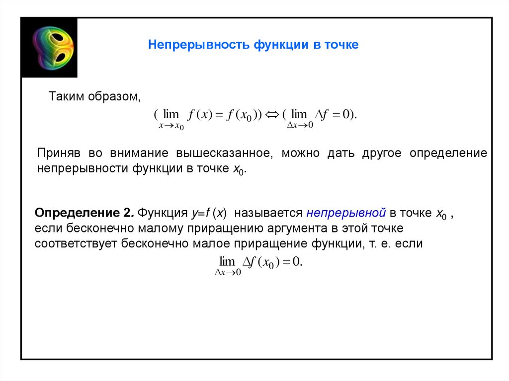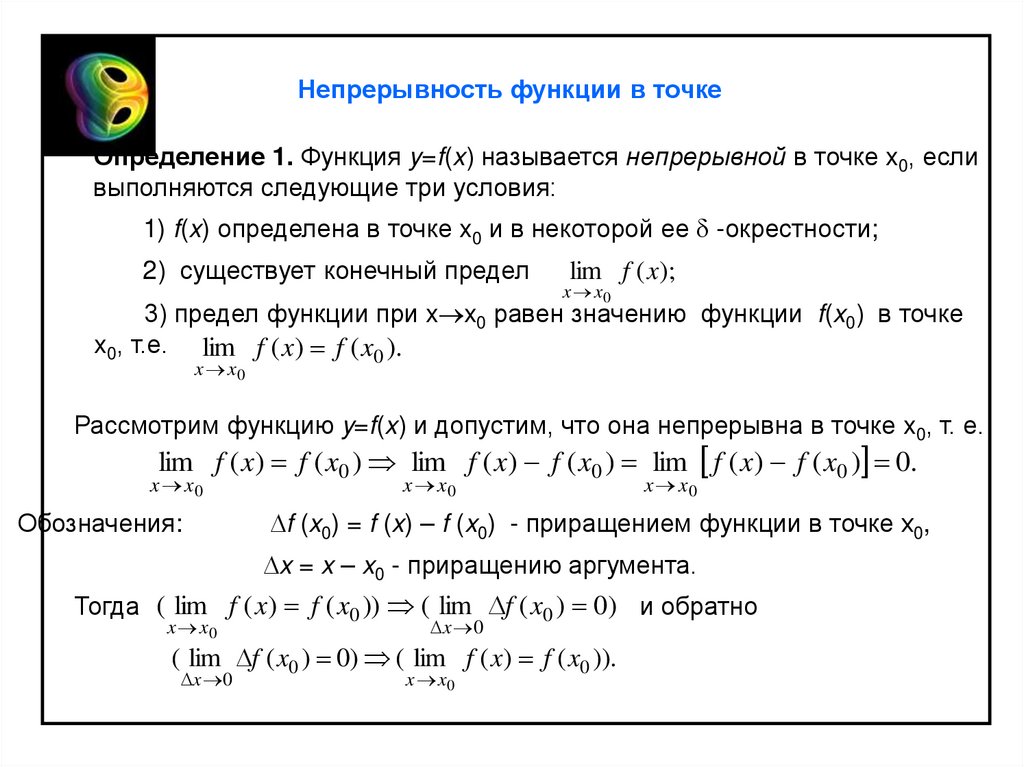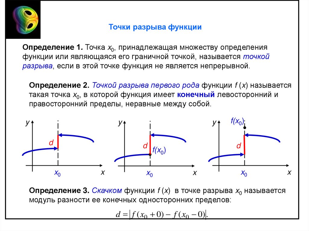 Точки разрыва функцииОпределение 1. Точка x0, принадлежащая множеству определения