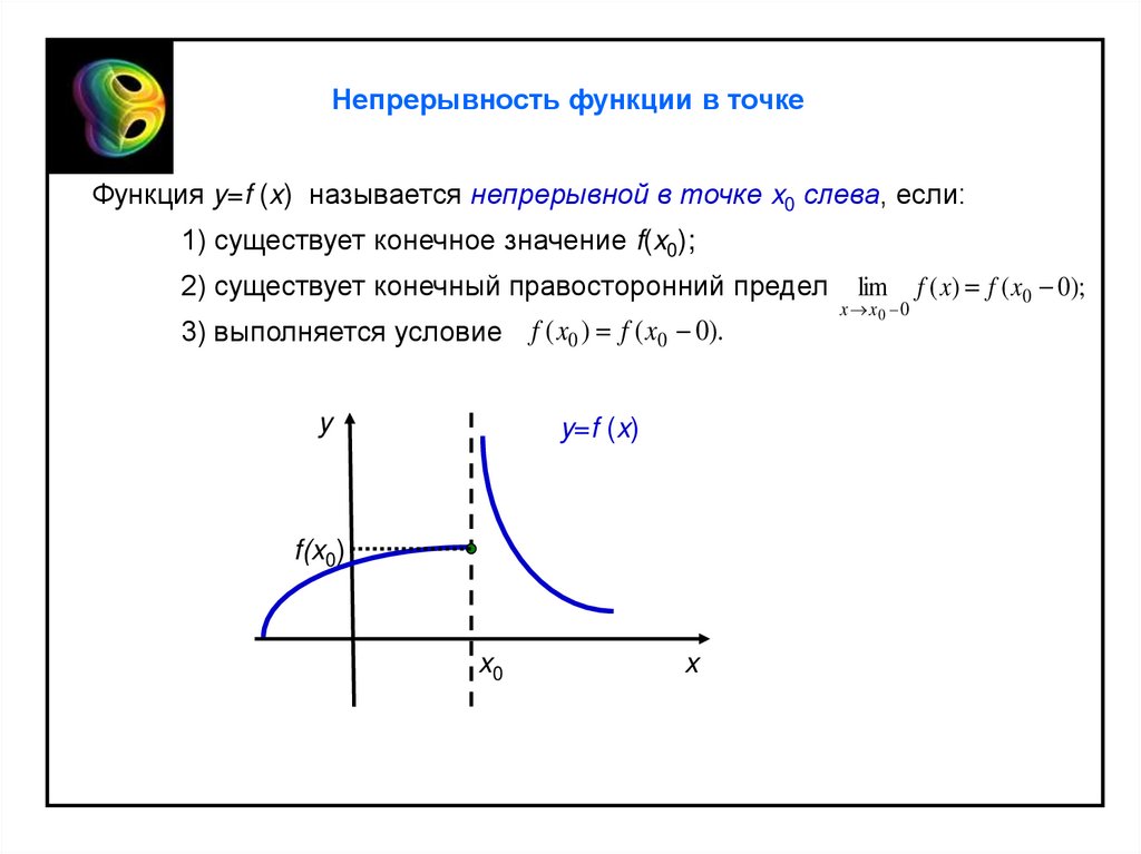 такая точка x0, в которой функция имеет конечный левосторонний и