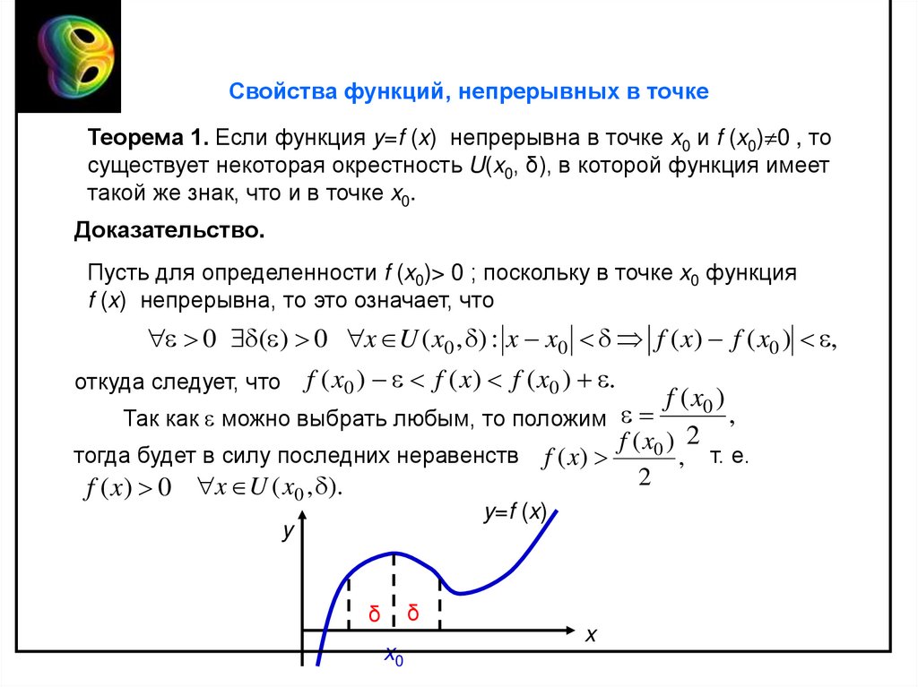 найдется интервал (x0- ;x0+ ) такой, что все точки графика y=f(x) с