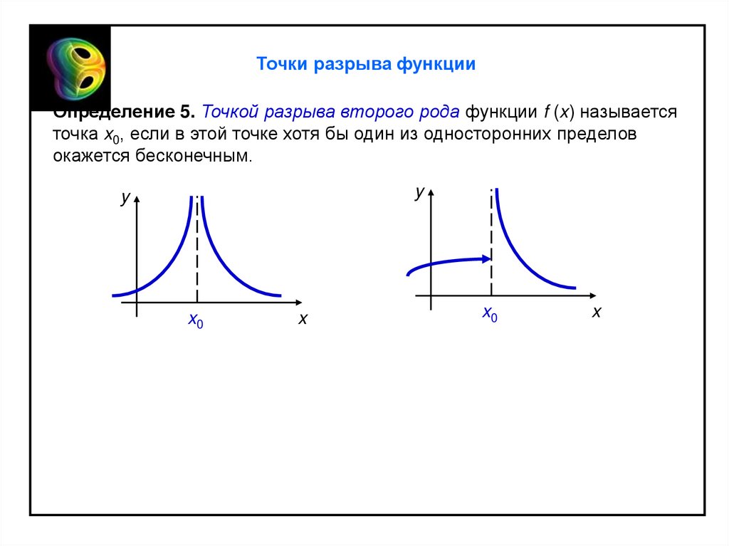 Точки разрыва функцииОпределение 5. Точкой разрыва второго рода функции f (x) называется