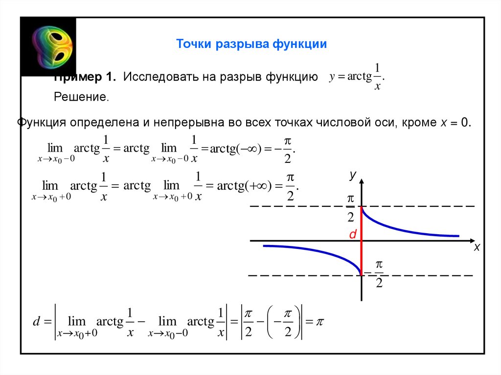 Пример 1. Исследовать на разрыв функцию y arctg .