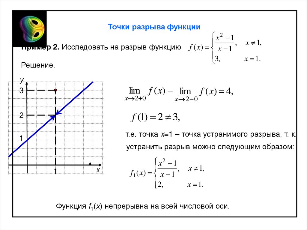 Точки разрыва функцииПример 2. Исследовать на разрыв функцию