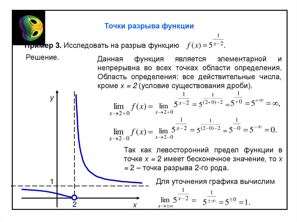 Точки разрыва функцииПример 3. Исследовать на разрыв функцию