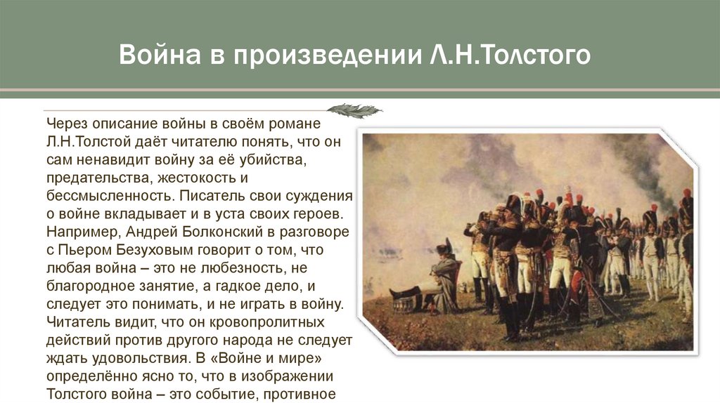 Война в произведении Л.Н.ТолстогоЧерез описание войны в своём романе
