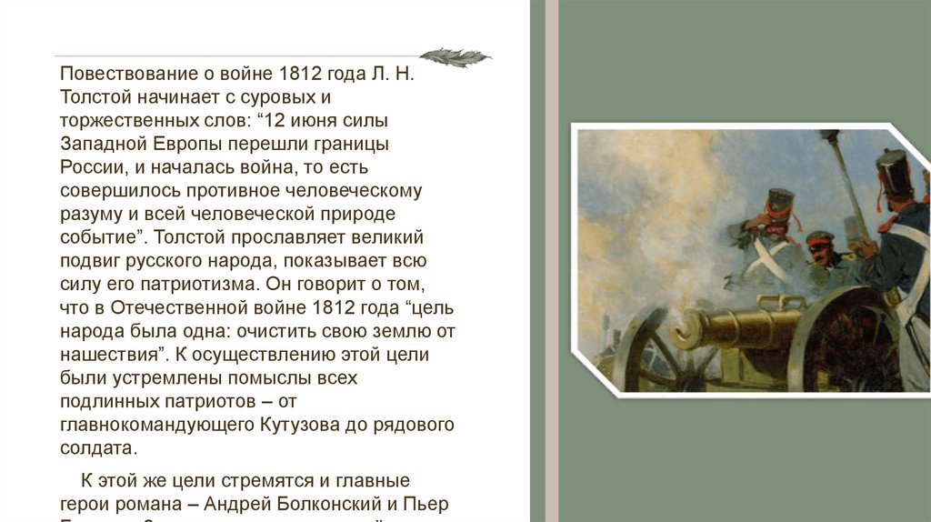 Повествование о войне 1812 года Л. Н.Толстой начинает с суровых и