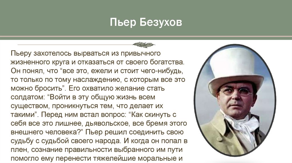 с Пьером Безуховым говорит о том, что