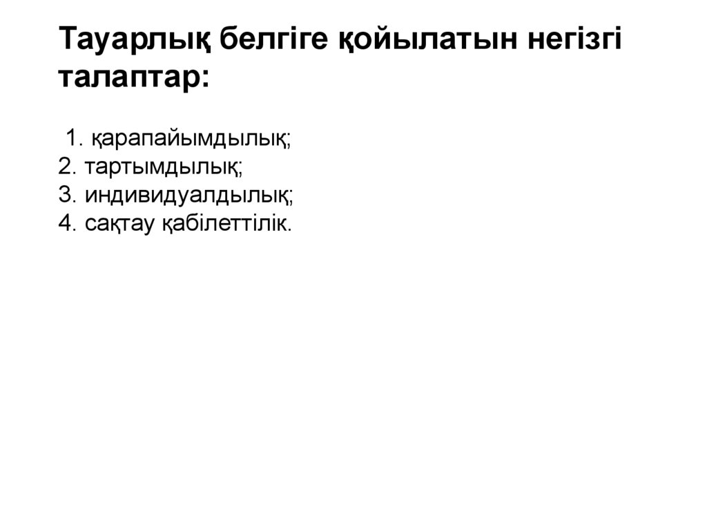 Тауарлық белгіге қойылатын негізгіталаптар: