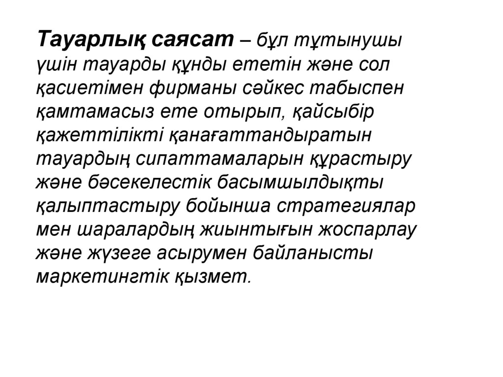 Тауарлық саясат – бұл тұтынушыүшін тауарды құнды ететін және сол