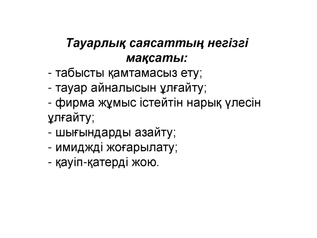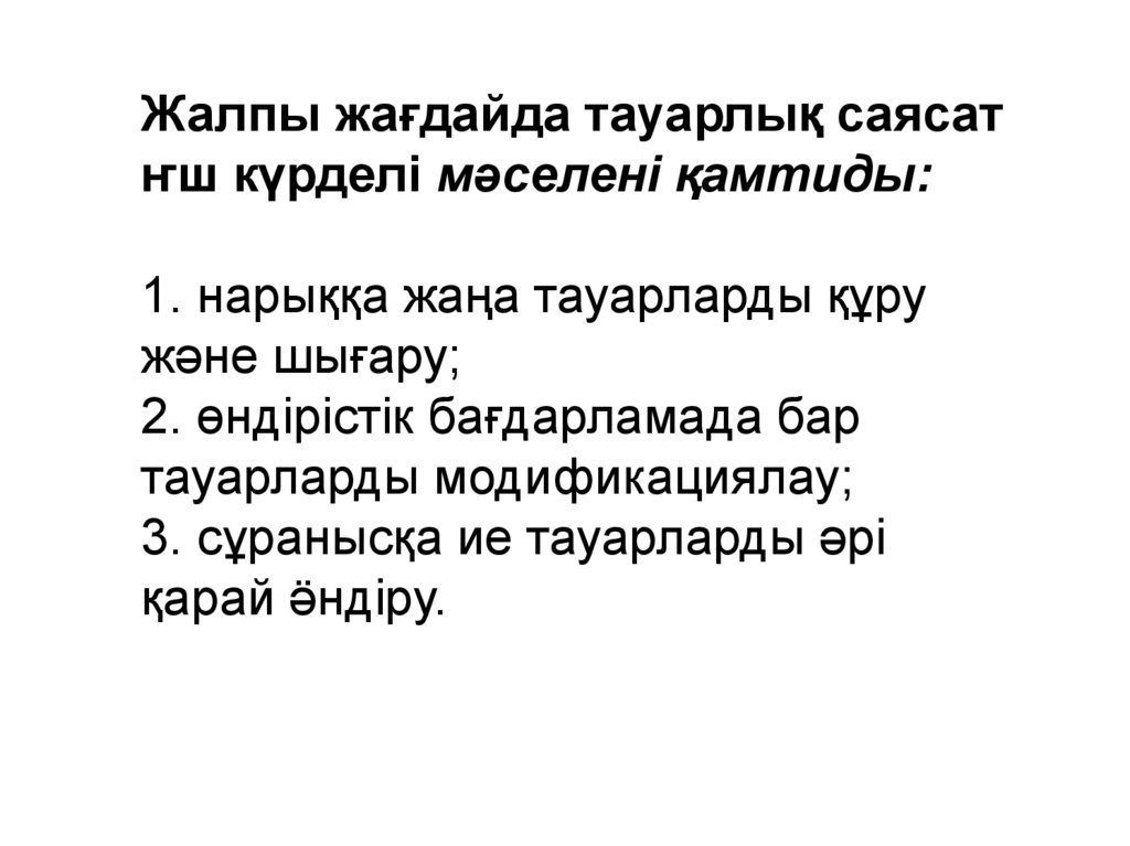 Жалпы жағдайда тауарлық саясатҥш күрделі мәселені қамтиды: