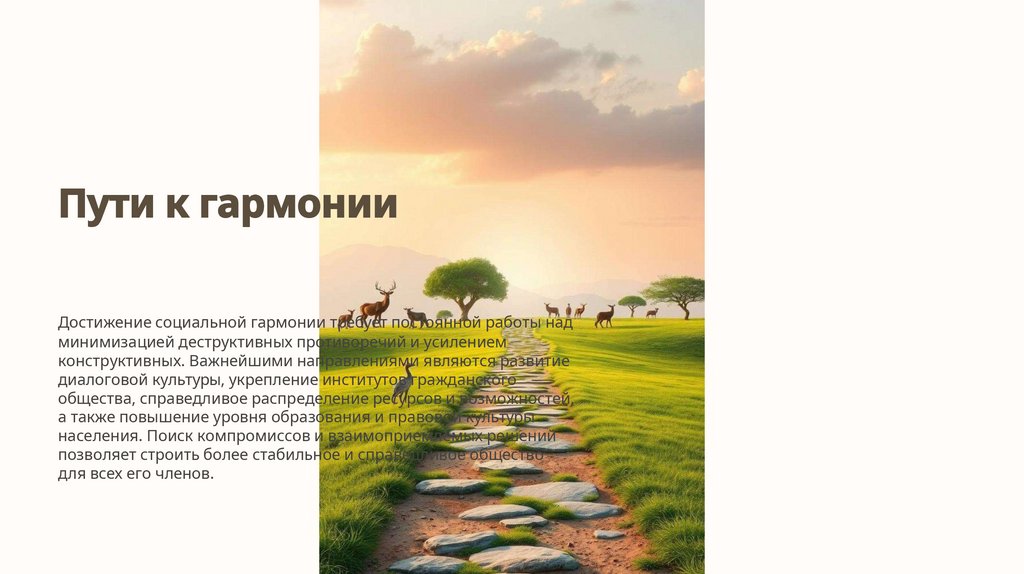 Пути к гармонииДостижение социальной гармонии требует постоянной работы над