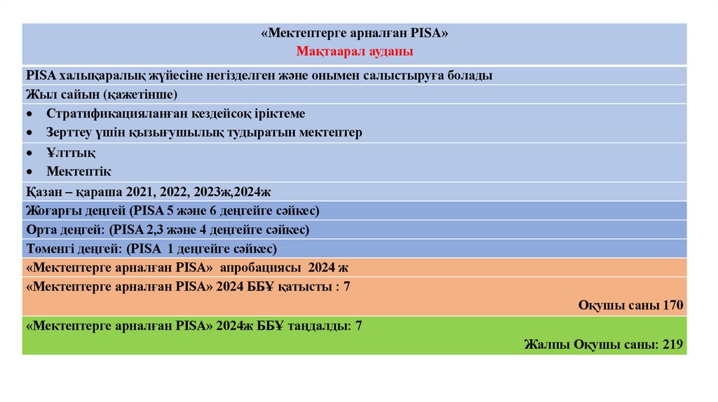 «Мектептерге арналған PISA» 2024 ББҰ қатысты : 7