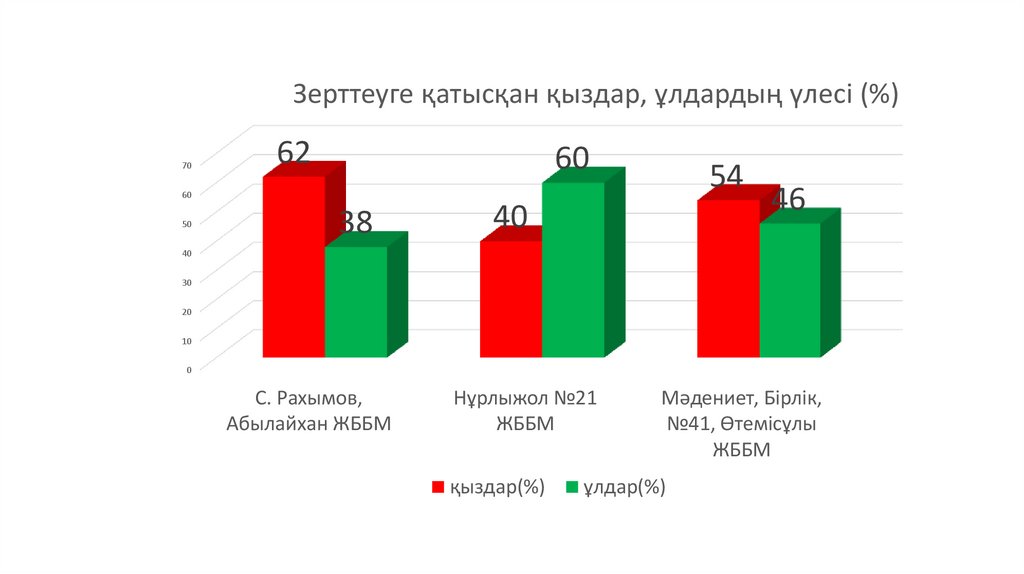 Зерттеуге қатысқан қыздар, ұлдардың үлесі (%)70