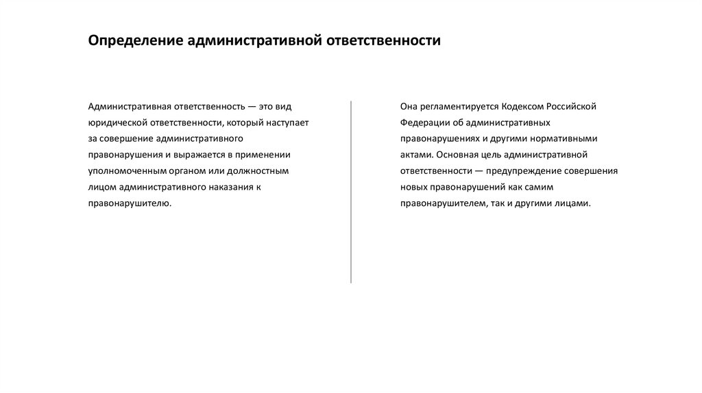 Определение административной ответственностиАдминистративная ответственность — это вид