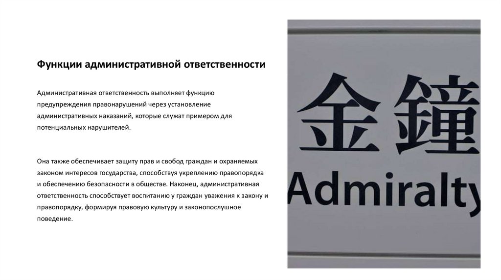 Функции административной ответственностиАдминистративная ответственность выполняет функцию