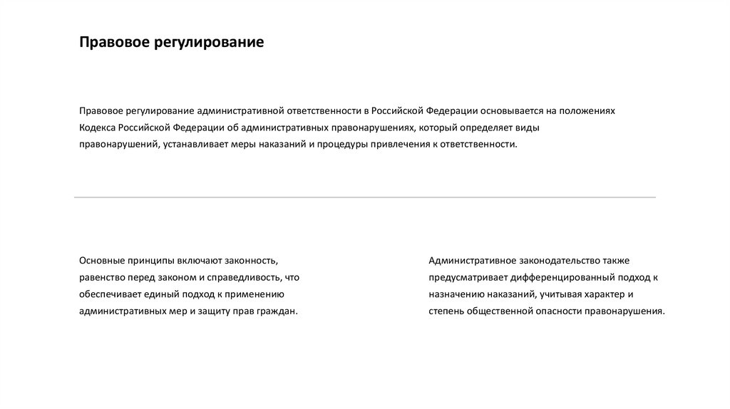 Правовое регулированиеПравовое регулирование административной ответственности в Российской Федерации основывается на положениях