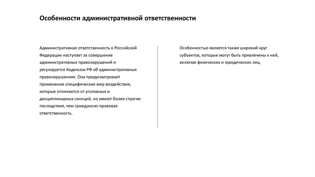 Особенности административной ответственностиАдминистративная ответственность в Российской