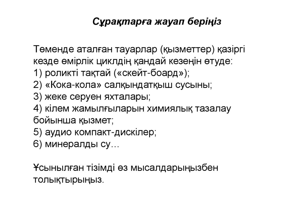 Сұрақтарға жауап беріңізТөменде аталған тауарлар (қызметтер) қазіргі
