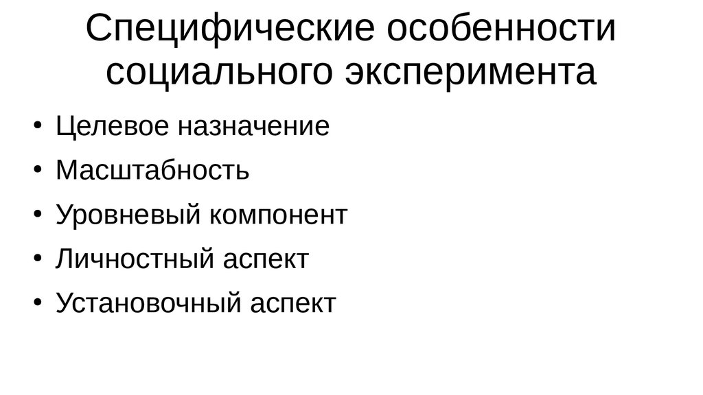 Специфические особенностисоциального эксперимента