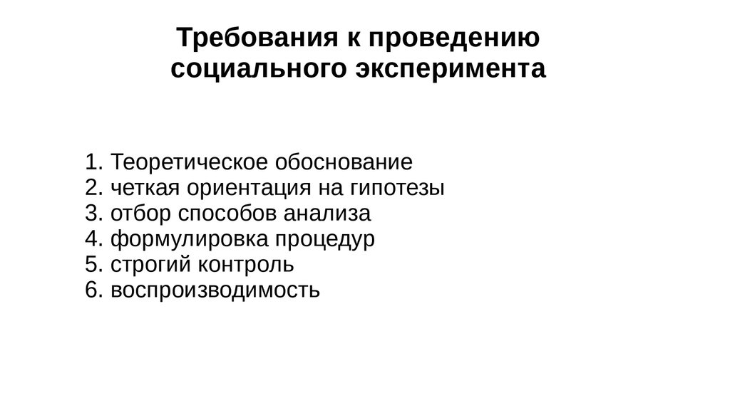 Требования к проведениюсоциального эксперимента