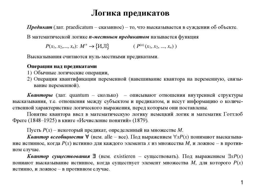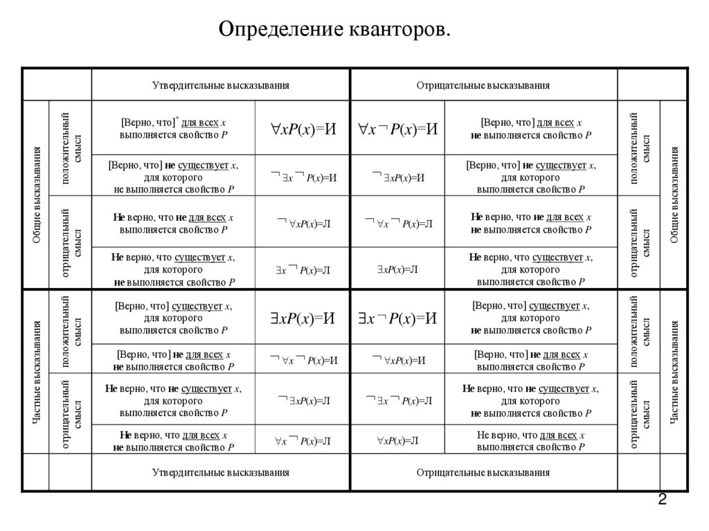 Кванторы (лат. quantum – сколько) – описывают отношения внутренней структуры