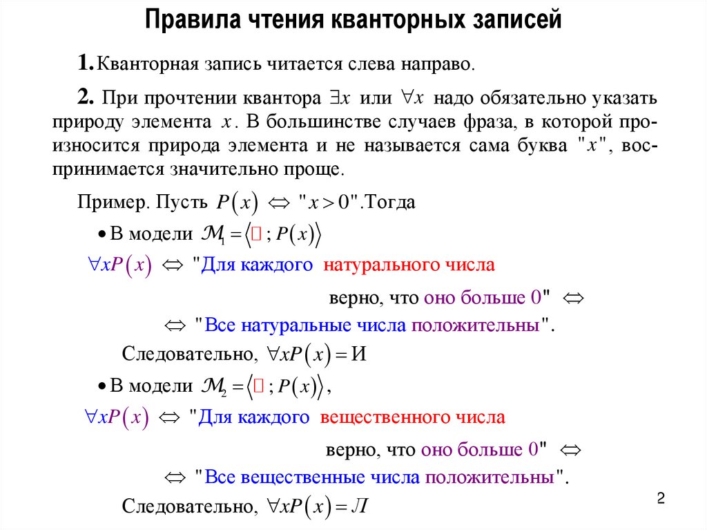 2) Операции квантификации переменной (навешивание квантора на переменную, связывание переменной).