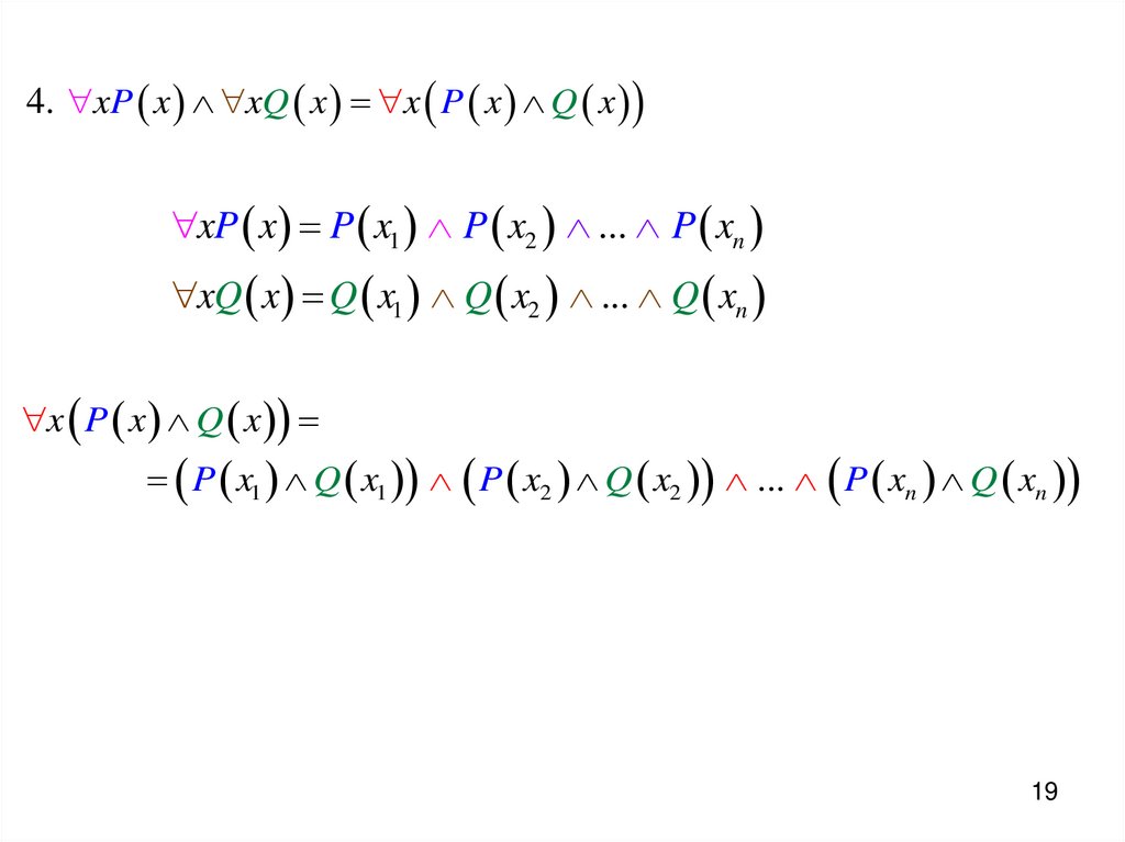 Квантор всеобщности (нем. alle – все). Под выражением xP(x) понимают высказывание истинное, когда P(x) истинно для каждого элемента x из множества M, и ложное – в противном случае.