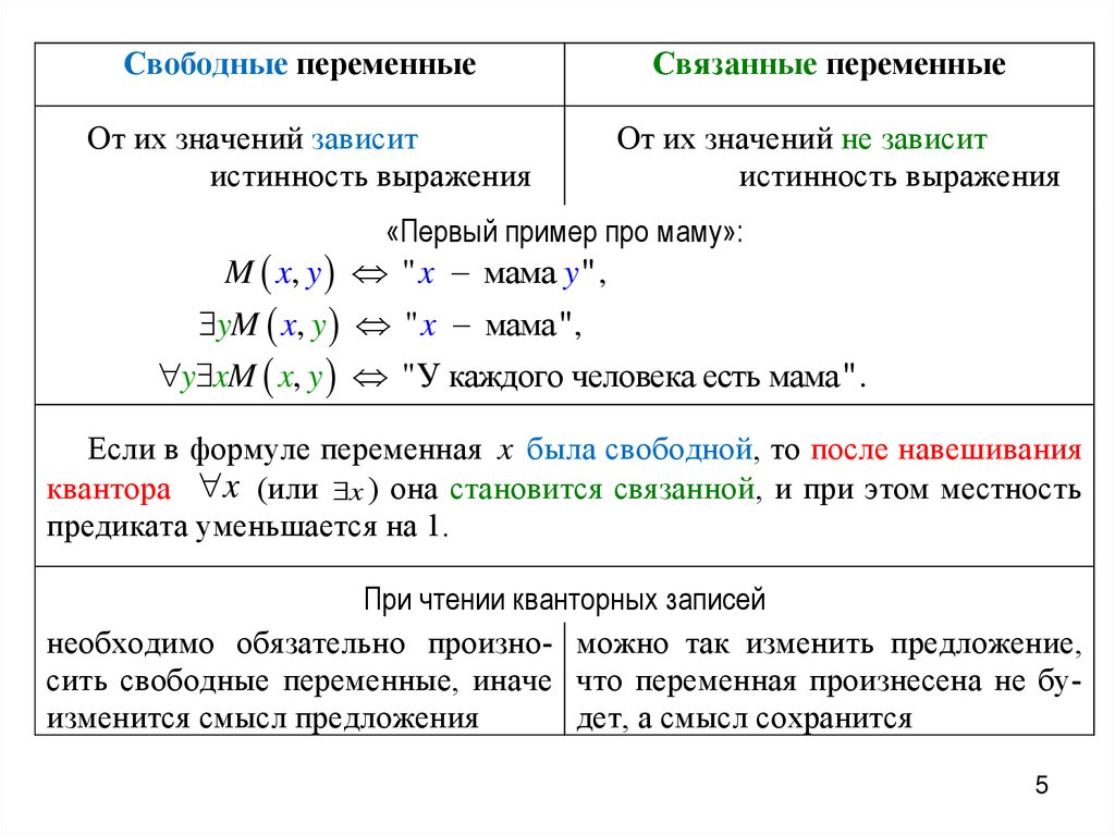 сить свободные переменные, иначе что переменная произнесена не буизменится смысл предложения