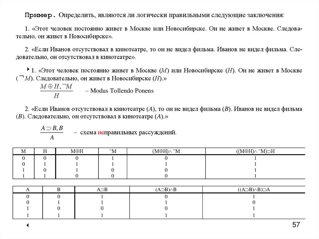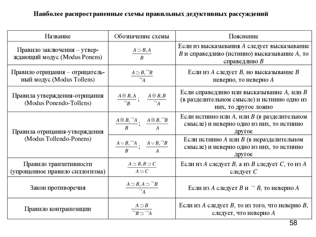 Закон исключения третьего: из двух противоречащих друг другу высказываний одно истинно, а второе – ложно.
