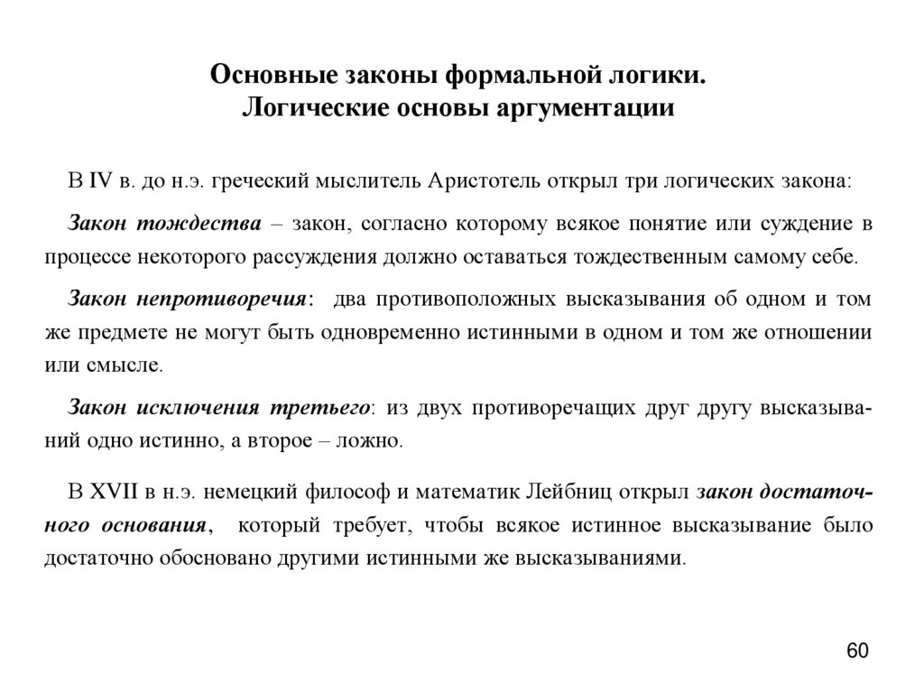 В IV в. до н.э. греческий мыслитель Аристотель открыл три логических закона: