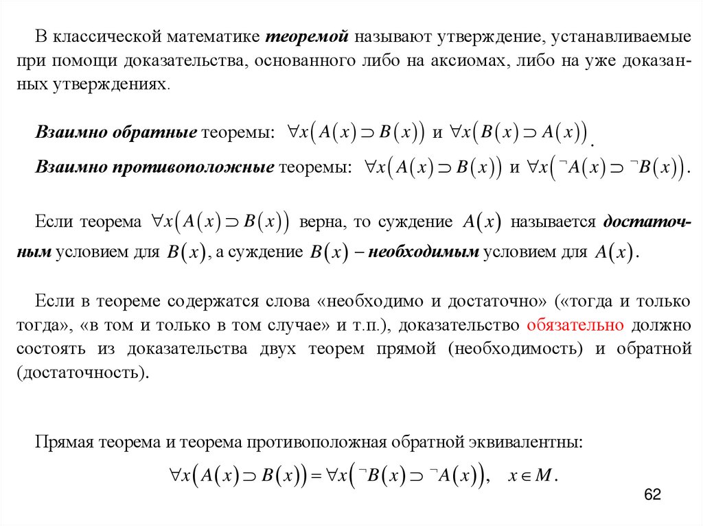 В классической математике теоремой называют утверждение, устанавливаемыепри помощи доказательства, основанного либо на аксиомах, либо на уже доказанных утверждениях.